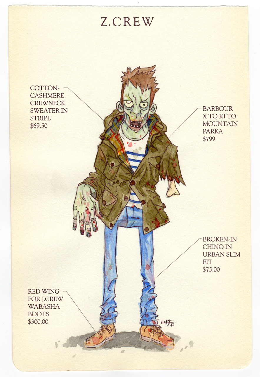 An ongoing personal project taking to things I like, the undead and fashion, namely J. CREW and throwing them into a watercolor fueled blender.